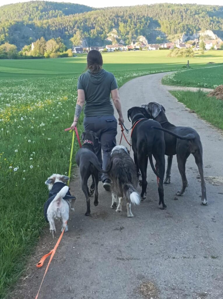 Am Vormittag geht es für unsere Gruppenhunde weiter in den Gassi-Service. Wir holen die Hunde ab, verbringen gemeinsam Zeit in der Natur und erkunden täglich neue Wege, Wälder und Wiesen rund um den Bodensee. Dabei wechseln die Gruppen und Orte regelmäßig, sodass die Hunde viele unterschiedliche Eindrücke sammeln können.