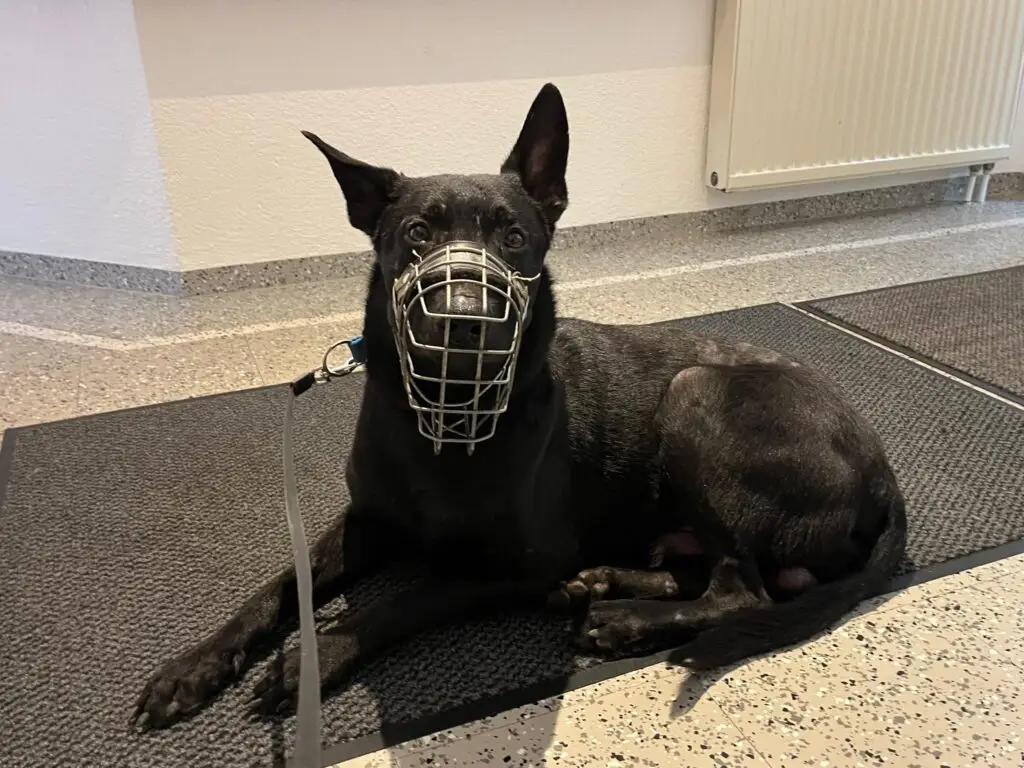Er ist sehr gut Maulkorb gewohnt was ihm ein Leben in Gesellschaft und im Alltag ermöglicht.